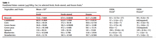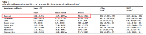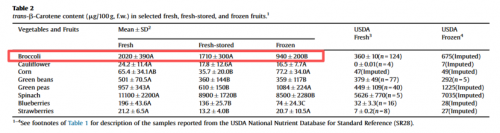 新鲜和冷藏储存的西兰花含量相近(2020 vs. 1710 微克 / 100克),但都明显高于速冻样品(940 微克 / 100克)。这可能与工艺流程中的轻微损失有关,但通过搭配其他富含- 胡萝卜素的食材。