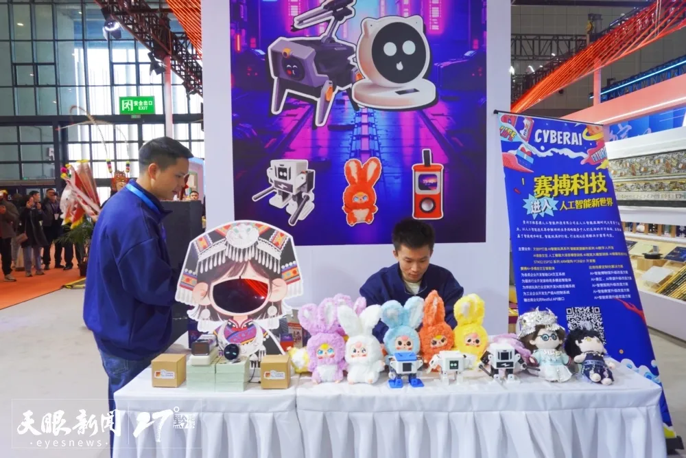 都匀市水家学会副会长侯圣存现场展现,将陈旧水书文字书写于纸面之上,与交游观众互动,引得观众猎奇停步;贵州万维赛博人工智能科技有限公司带来的AI功用植入玩具,让观众自主完成模型替换、对话定制和拼装,产品的互动性与趣味性让不少年轻人点赞。这种传统与现代的磕碰,正是贵州文旅工业守正立异的生动缩影。